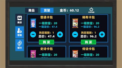 4、出售的卡包和卡盒是吸引顾客的关键,玩家可以根据市场的需求和流行趋势来选择合适的产品进行销售。