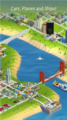 4、收集利润并投资于使您的城市保持增长的升级,让你的城市充满新型汽车、飞机和轮船。