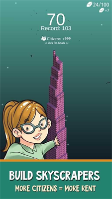疯狂建楼大亨汉化版是一款非常有趣的模拟经营手机游戏,这款游戏中,你可以体验到建楼的乐趣,玩法非常的简单,只要用手指轻轻一点就可以了,用自己的双手建造最好的大楼,赚更多的钱,感兴趣的小伙伴快来下载试一试吧。