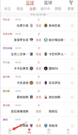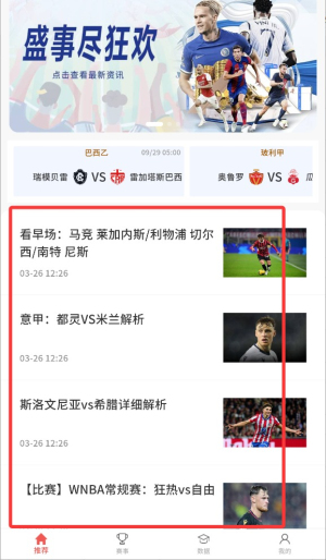 2、在首页选择"推荐"功能入口,浏览各类体育资讯的详细分类列表。