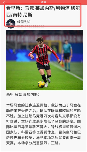 4、进入详情页后可查看完整的赛事报道、专家分析及相关图文视频资讯内容。