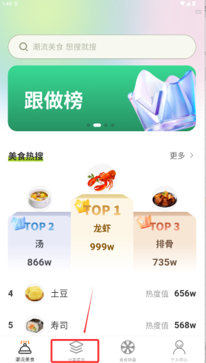 1、在主界面下方点击分类菜谱,进入分类菜谱页。