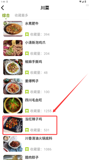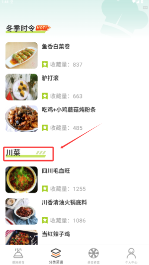2、在分类菜谱列表中,点击喜欢的菜系,例如川菜页面。