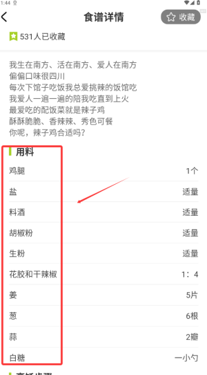 4、在菜谱详情页,查看菜谱的具体用料与制作方法。