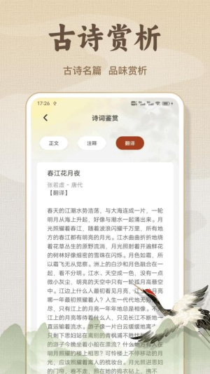2、专业的诗词分析小组对每部作品进行多角度阐释,既有字句解释也有艺术特点评析,部分名篇配置语音诵读资料,使用者可以通过模仿朗读增强古诗文感悟。