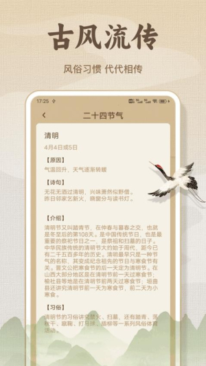 2、传统文化扩展区域包含对二十四节气的完整介绍与其关联诗词民俗的联合解说,每个节气都从天象变化气候特征及民间传统等多视角展开说明。