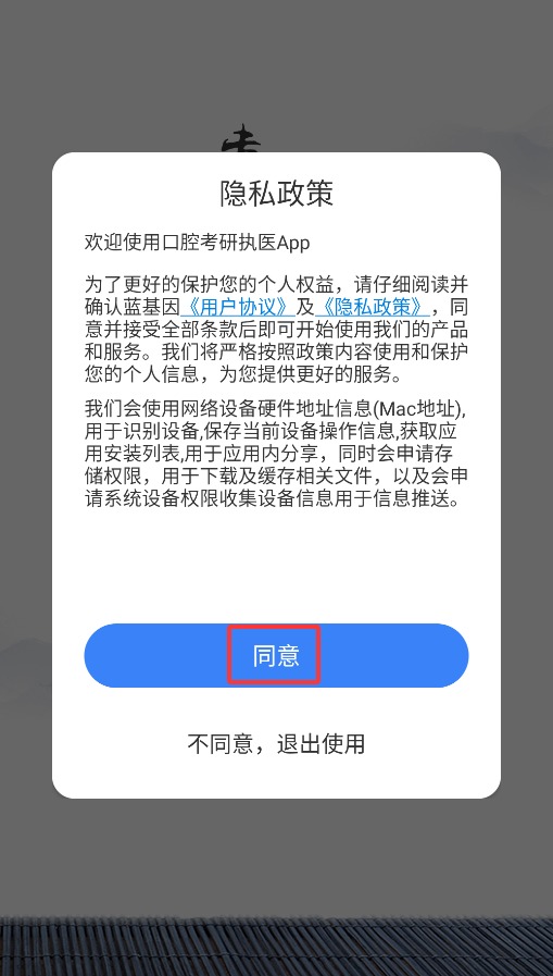 1、初次打开软件时,请选择弹窗内的"接受"选项,才能进入首页正常使用。