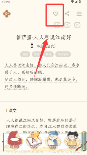 3、通过收藏功能积累心仪诗作,定期在个人中心温习学习,逐步提升鉴赏水平。