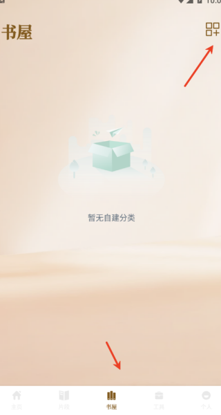 3、点击底部的书屋,通过添加按钮的形式来新建专属自己的书屋;