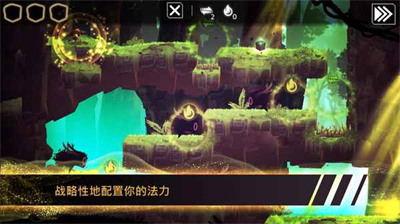 1、魔法师冒险打怪的平台益智游戏,制作算精良,可以说是一个铺路游戏?在一开始规划好魔法放置范围,按启动键才可以开始操作角色走动。