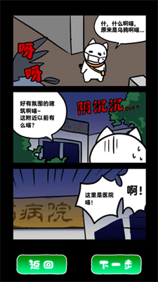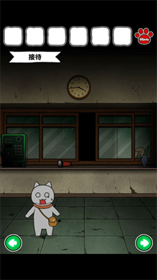 3、简单的左右移动按钮:白猫和废弃的病院轻松观察,点击收集,进行解谜。