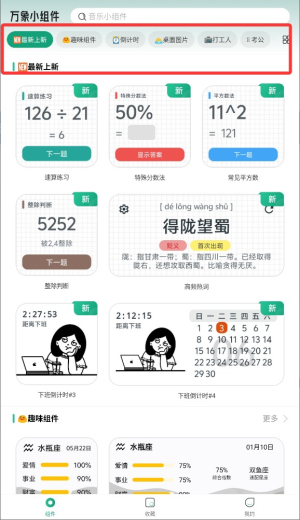 2、在主页会展示最近更新的小组件,让每位用户及时了解。