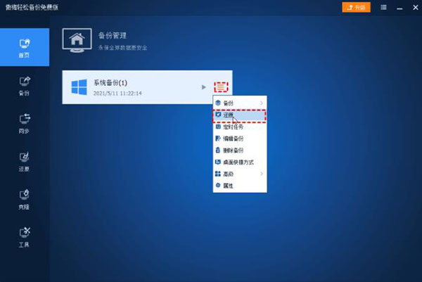 4、以下是使用轻松备份进行系统还原的具体步骤: