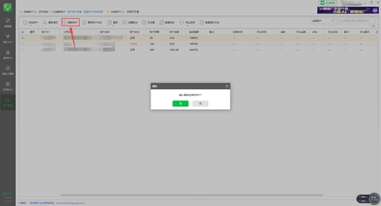 点击“删除账号”按钮,弹出确认窗口,确认后系统将删除该账号。