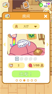3、金币可以用来开新的房间,用来买黑心狗的宝石,还可以让猫猫加速完成外出。