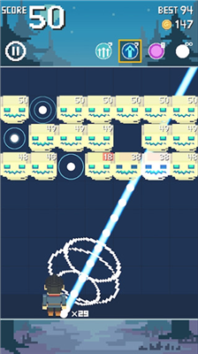 1、开始挑战之后,玩家将使用主角手中的盾牌作为弹射弹珠的挡板,以此来消除需要击碎的方块。