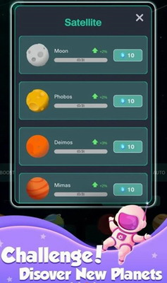 3、放置养成的模式,添加各个星球即可,加快成长的速度,获取更多资源;