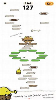 1、创新的画面设计:涂鸦跳跃2采用了独特的手绘风格,给人一种别具一格的视觉体验,让你仿佛进入了一个充满想象力的绘画世界。
