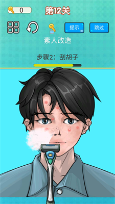 4、显示出了清晰的剃胡子步骤,只需要简单的几步就能够将角色脸部的胡子剃完。