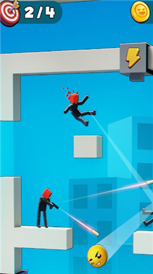 2、瞄准射击,利用各种环境元素,如反弹、穿透等物理现象来击倒目标。