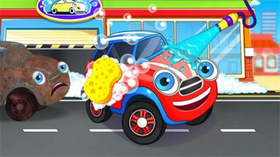 2、按照步骤一点点将脏兮兮的汽车变成原来光鲜亮丽的样子,卡通的设计让游戏变的有趣。