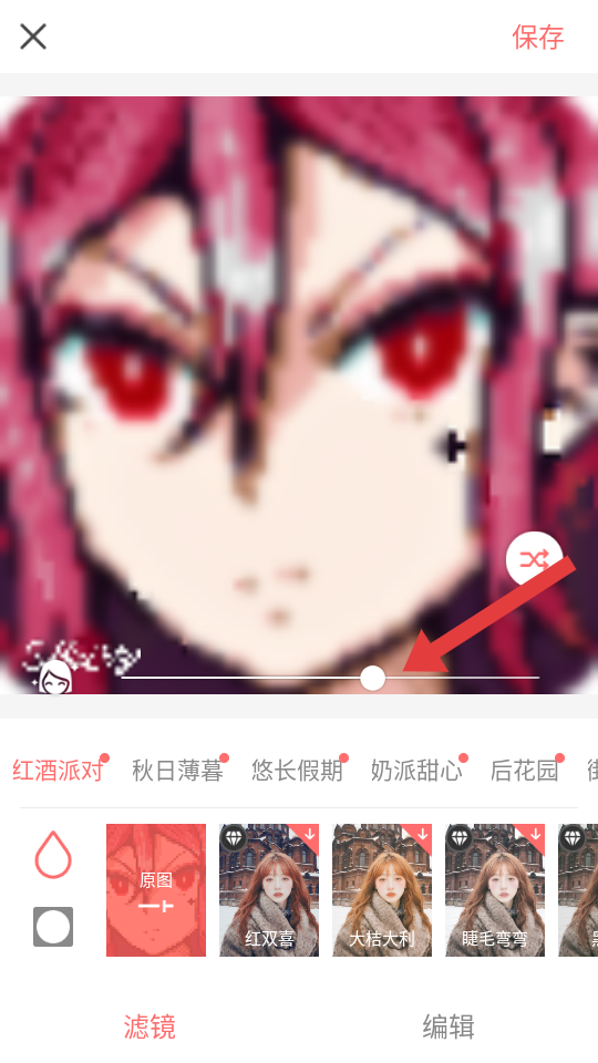 4、移动底部的调节按钮,控制背景模糊强度,调整完毕可点击右上角存储。