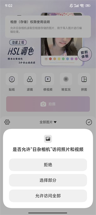 3、需要导入图片进行编辑时,需先开启手机相册访问权限。
