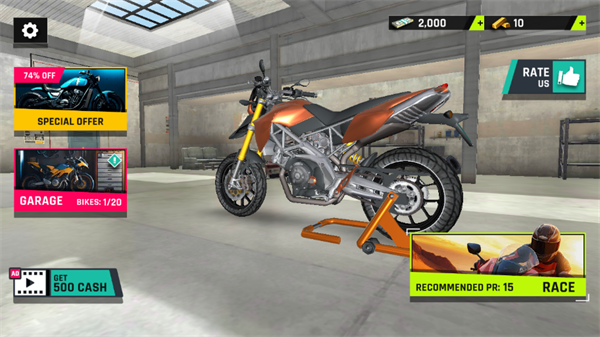 允许玩家对摩托车进行个性化改装,从外观涂装到性能升级,都能按照个人偏好调整,充分展现玩家独特的驾驶风格。