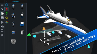 3、使用易于使用的工具调整油箱、机翼、货舱、整流罩和鼻锥的大小和形状,帮助您准确地创建您想要的东西。调整太阳能电池板、车轮、活塞、减震器等的大小以满足您的需求。绘制您的工艺自定义颜色并调整它们的反射率、发射率和纹理样式。