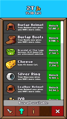 5、从零开始,通过冒险赚取金币并升级装备。华丽的装备可以提供更多的金币。