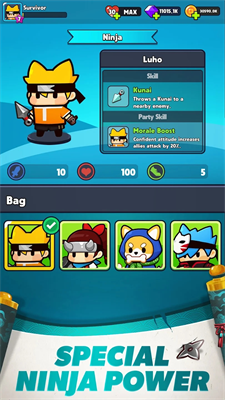 忍者幸存者无广告版是一款融合了肉鸽元素的动作冒险手机游戏,复古经典的像素风格结合炫酷的画面场景,带给玩家非常独特的观感,感兴趣的小伙伴快来下载游戏,在充满未知的世界中开始你的试炼冒险吧。