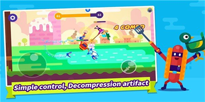 2、不断挑战新的关卡,升级你的力量,解锁新角色,享受这场斗殴派对吧。
