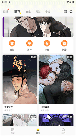 1、启动程序主页即可通过分类、榜单、标签来快速找到感兴趣的漫画作品