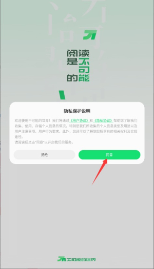 1、初次打开程序时,界面会展示用户协议和隐私条款,阅读完毕点击同意按键进入主页面。