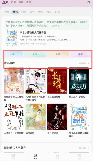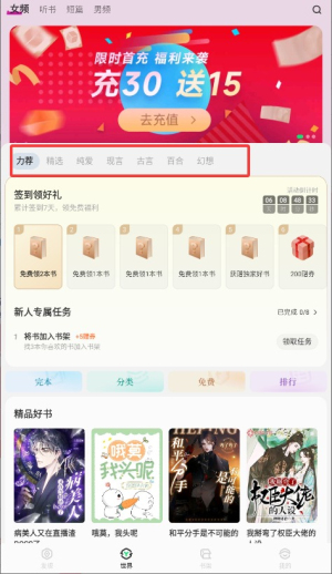 2、在主页菜单栏挑选"小说分类"功能,查看各种题材和热门推荐作品。