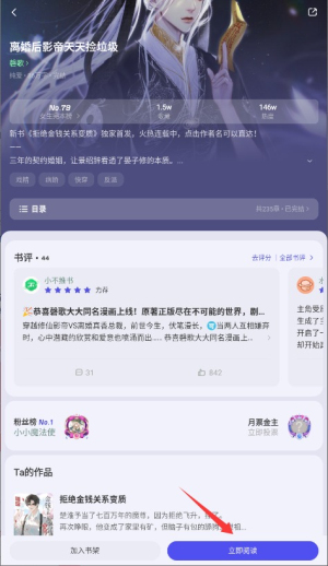 3、从书单中挑选感兴趣的小说,点击查阅详细信息和章节目录。