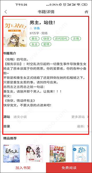 3、并且看到感兴趣的小说,单击就能查看书籍详细资料;