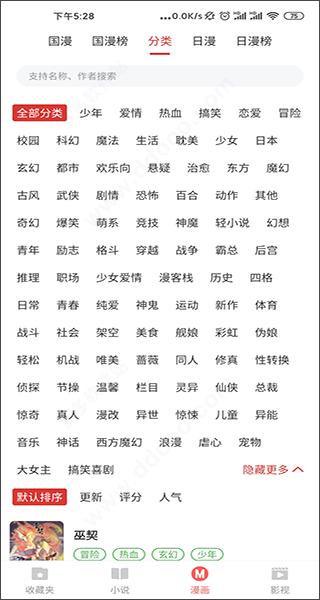 5、在"漫画"中,同样为大家带来了丰富漫画品类,可进行筛选,或输入关键词进行搜索查找;