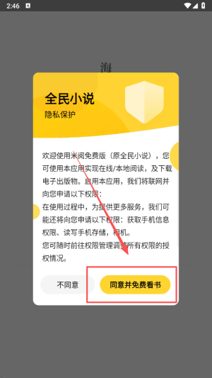 1、点击同意以进入程序的主页,您将感受丰富的小说资源和顺滑的操作界面,尽情享受阅读趣味。