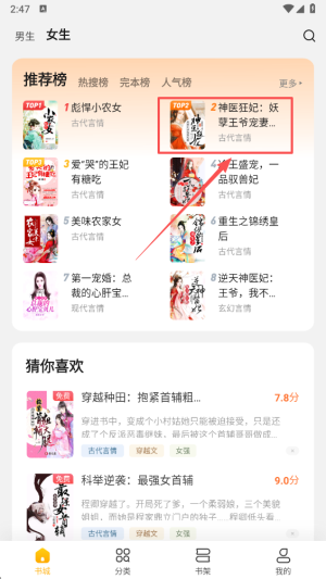 2、系统会将各类小说进行在线归类,便于使用者寻得喜欢的小说;