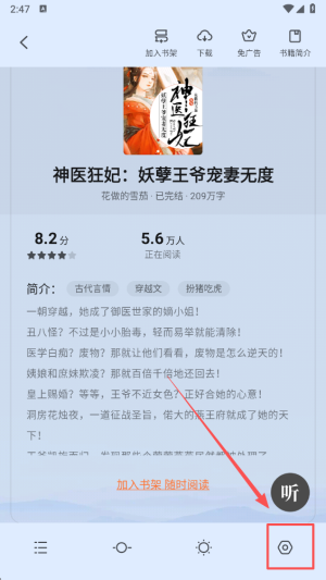 4、具备朗读服务,可以在平台上启动听书模式,在线收听小说;