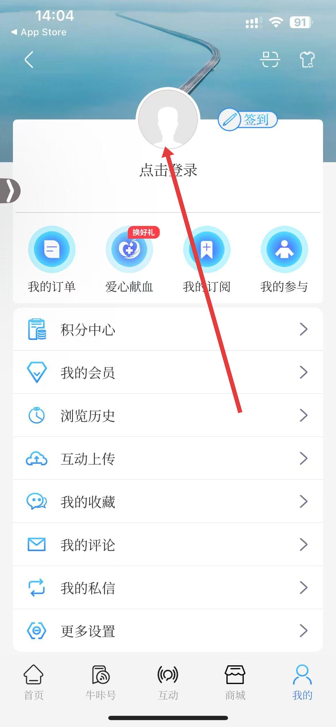 3、切换至“我的”页面后,向上浏览,看到显示未登录状态,点按进行账号登录,进入登录界面即可。